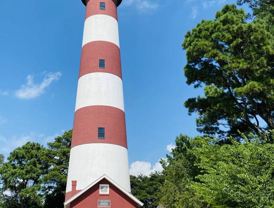 I waited hours to capture the lighthouse against the perfect sky and to capture it without any people. The strong blue makes the red and white of the lighthouse pop and the subtle clouds pick up the white tones in the pathway. The greenery adds balance but allows the lighthouse to stand out as the main content of the picture.